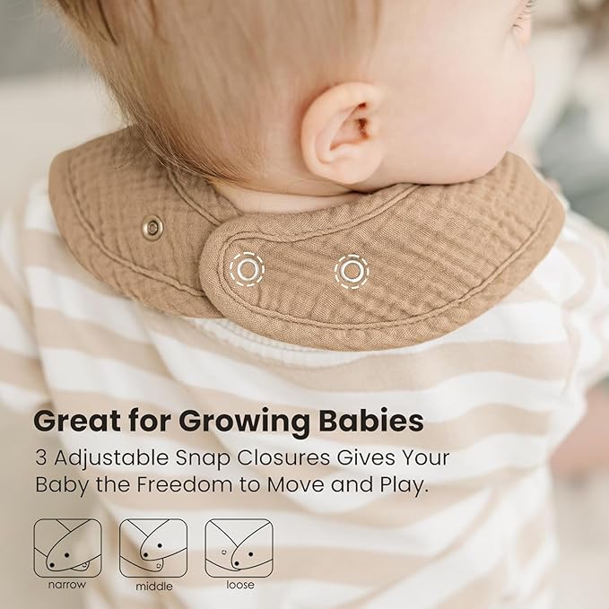 - Soft & Absorbent: These baby bibs are made with a 100% cotton muslin front and a polyester comfort fleece back for superior absorbency and a soft, skin-friendly feel. They effectively soak up drool and spit, keeping both you and your baby clean and dry-no more wet clothes