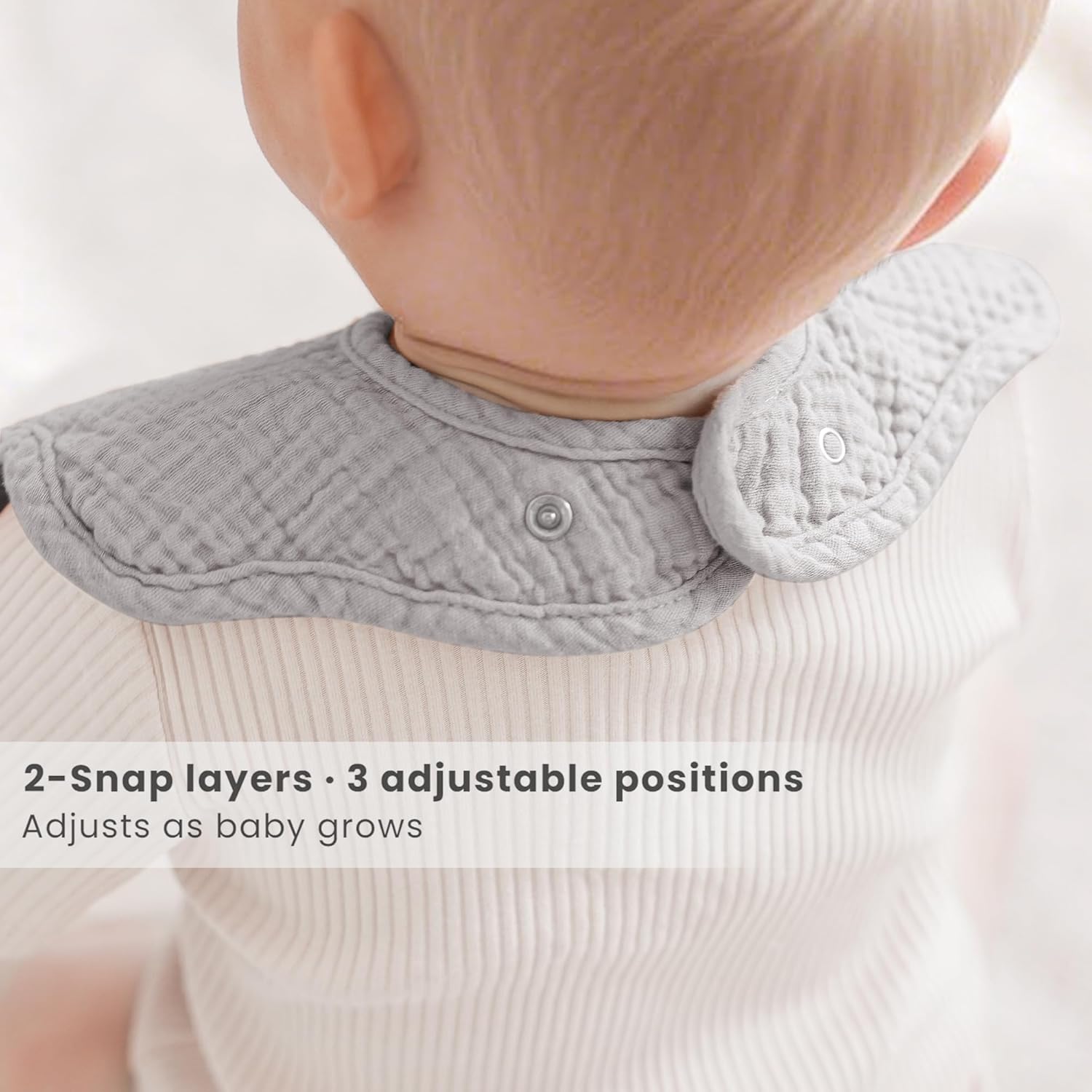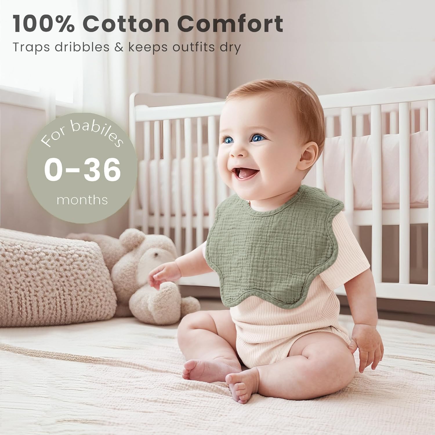 - Soft & Absorbent: Made from 100% pure cotton muslin, these bady bibs are ultra-soft. Perfect for newborns or babies prone to spitting up, these drool bibs. Ideal for teething babies, they make excellent baby bibs for drooling and teething.