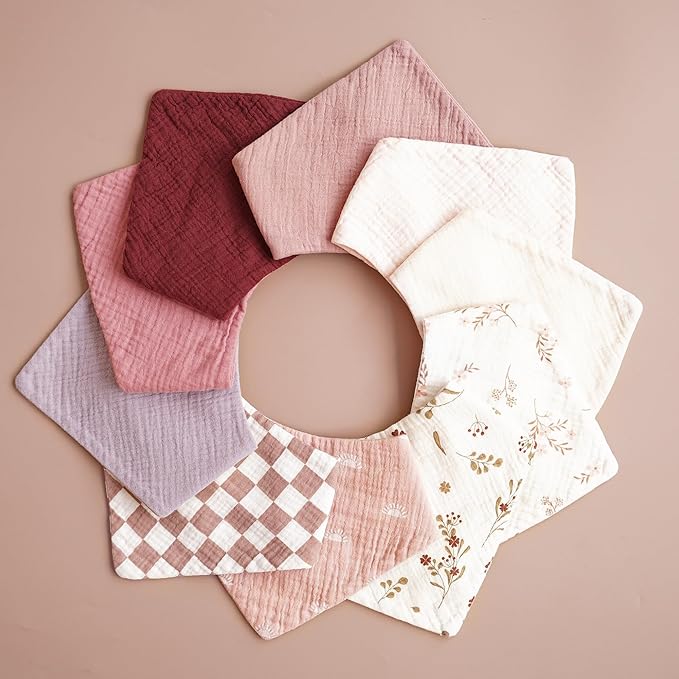 - Multi-Functional Uses: These soft muslin baby bandana drool bibs can be used in many different ways: they can be used as burp cloths, baby bibs, washcloth, and wipe clothes. Crafted with ultra-soft fabric to ensure your baby stays comfortable