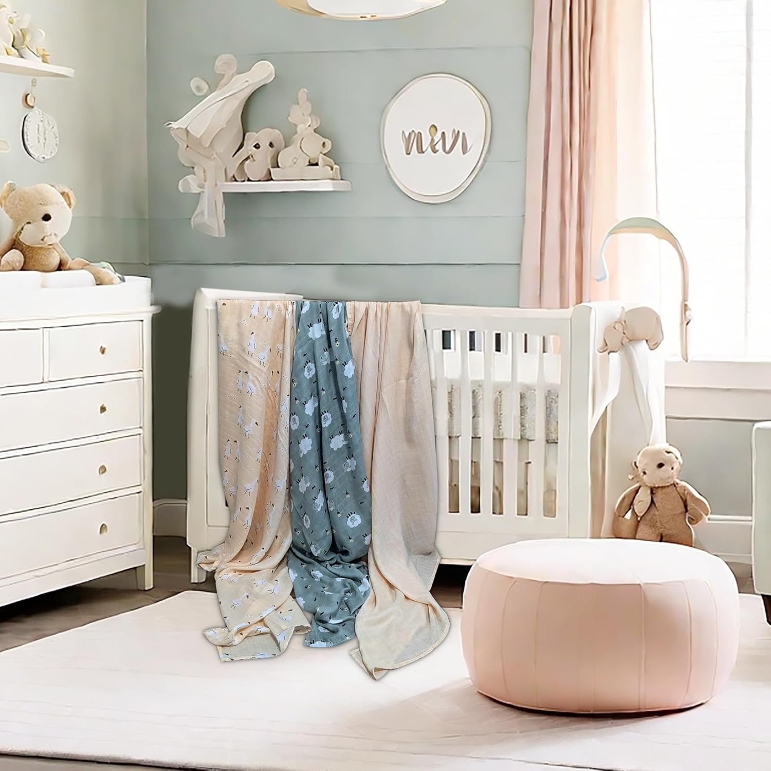 Muslin Swaddle Blankets for Newborn – 3 Pack Large 47"x47" Receiving Blankets – Soft, Breathable & Gentle – Unisex Little Farm