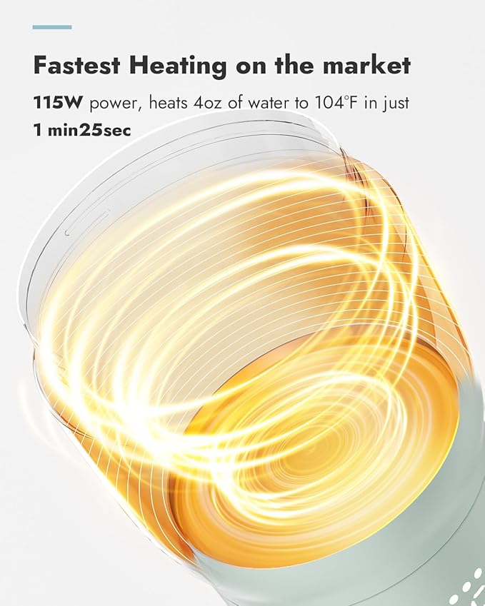 - Fastest Heating Speed: Warms 4oz refrigerated milk to 98°F in 2min30sec and 4oz room-temp water to 104°F in 1min25sec. No more waiting—ideal for travel, on the go or late nights. Get perfect temps fast with this portable bottle warmer or travel bottle warmer.