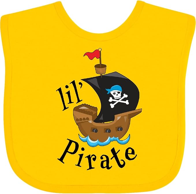 inktastic Lil' Pirate Pirate Ship, Blue Bandana Baby Bib