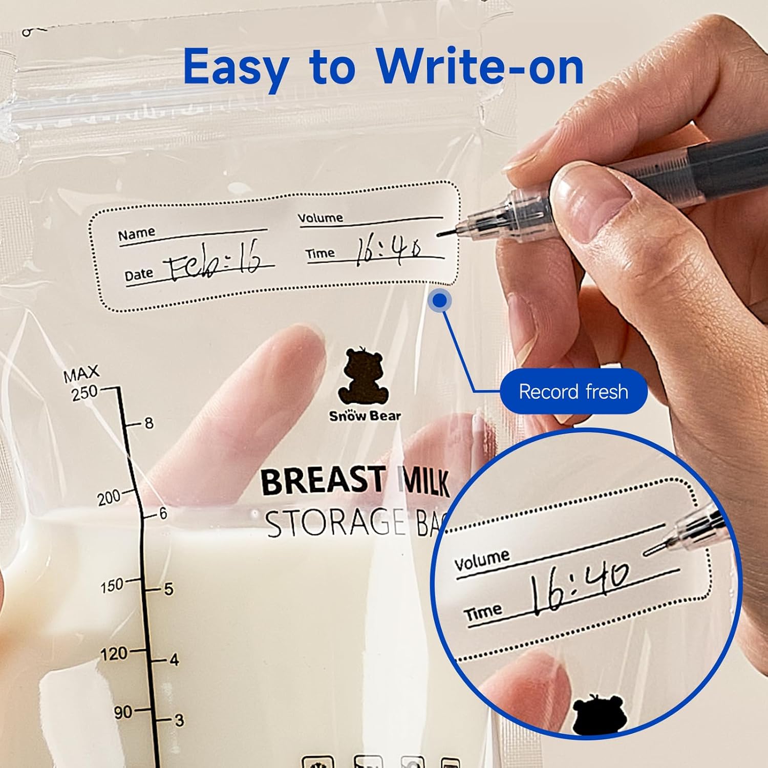 Snow Bear 8oz Breastmilk Storage Bag, 120 Count Breast Milk Storage Bags for Freezer, Double Zipper Milk Bags for Breastmilk