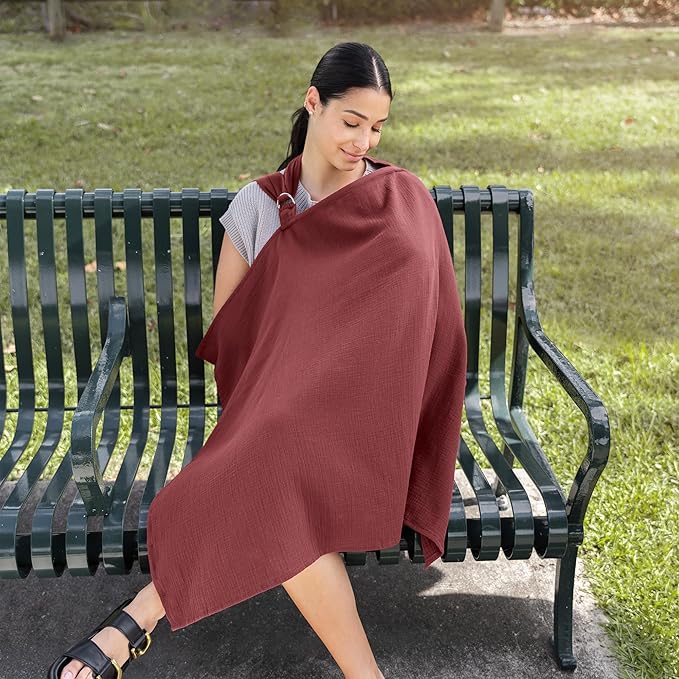 Comfy Cubs Muslin Nursing Cover, Pack of 1, 100% Muslin Breastfeeding Cover - Soft & Breathable Baby Nursing Scarf with Adjustable Neck Strap - Portable, Lightweight & Privacy Coverage - Wine