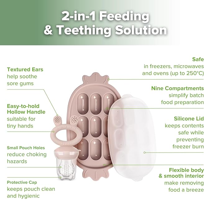 - SAFE & HYGIENIC MATERIALS: Made from 100% medical-grade silicone, this mesh baby feeder combo is non-toxic, BPA, PVC, and phthalate-free so it can be safely used as a baking or steaming tray