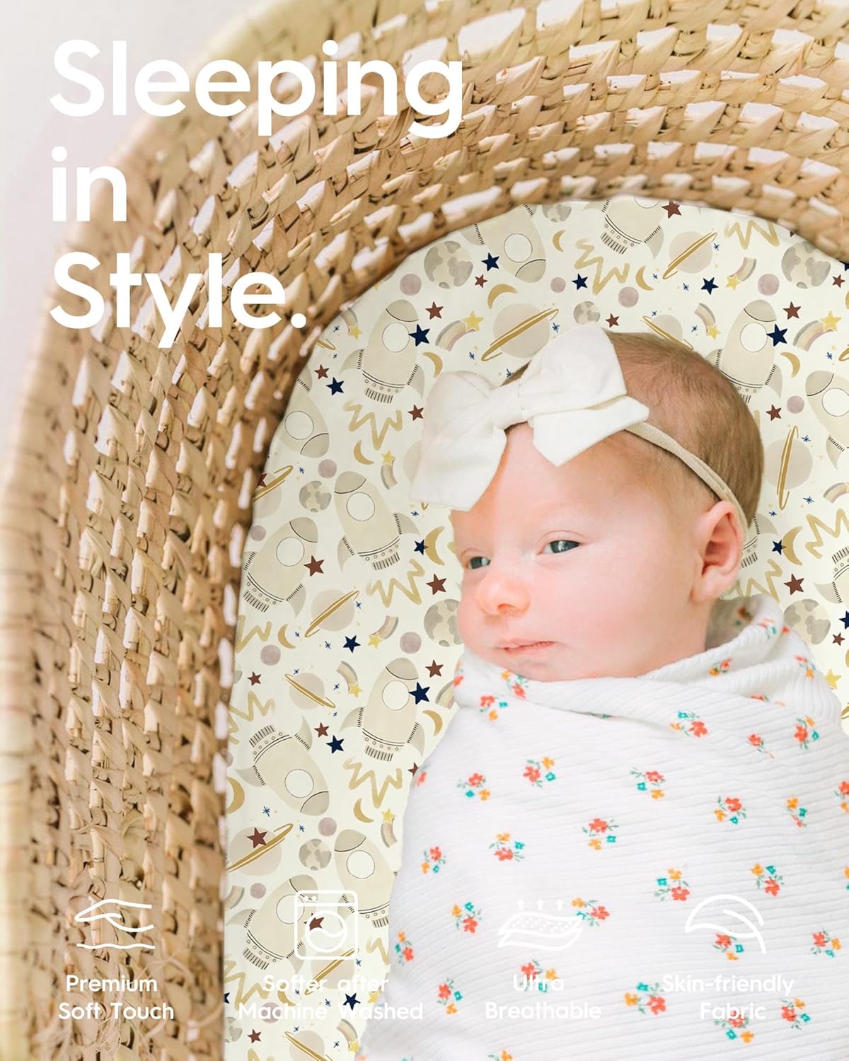 Bassinet Sheets for Baby Boy Girl, TotBasic Buttery Soft Universal Bassinet Fitted Sheet, Compatible with Halo, Mika Micky, Baby Delight, Dream On Me, Maxi COSI & More Bassinet Mattress(Space&Galaxy)