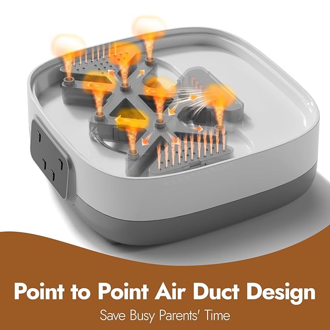 - 【Point-to-Point Drying Technology】NCVI’s unique air duct design ensures precise, point-to-point drying, eliminating dead zones and thoroughly drying every bottle and accessory. Glass, silicone, PP, and PPSU materials are all suitable, offering superior protection with 99.9% germ-free results