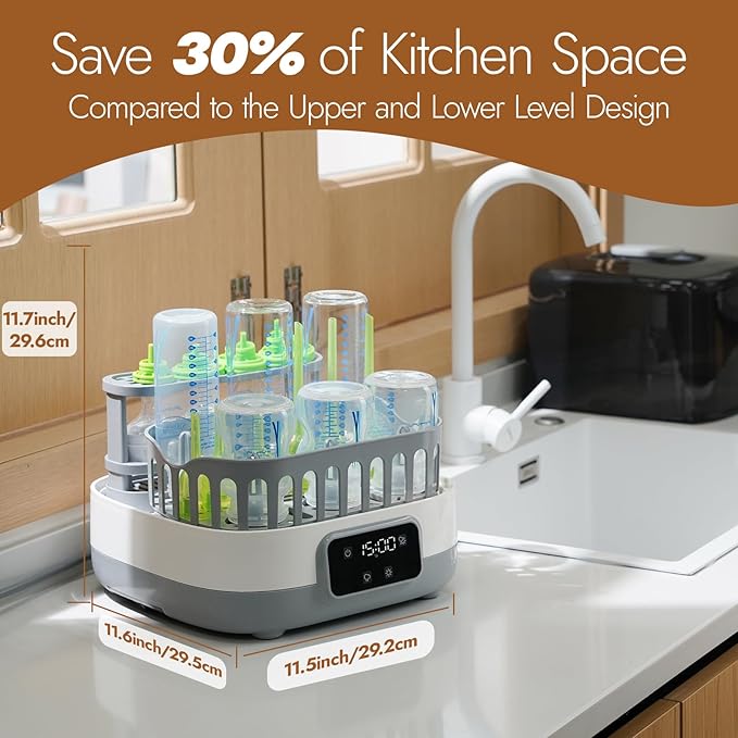 - 【Ultra-Fast Sterilization & Drying】The machine steam sterilizes in just 5 minutes and dries in 15 minutes, completing the process in 20 minutes. This 50% faster performance no longer needs for pre-planning and gives you time back compared to other machine
