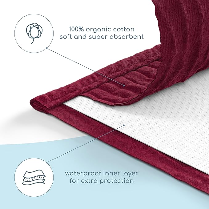 - 100% Natural Muslin Cotton top layer and waterproof inner layer - Our Muslin burp cloths are made of 100% organic cotton. It has a soft, pleasant structure of the fabric that easily absorbs moisture. It is breathable and skin-friendly with a lovely fluffy touch.