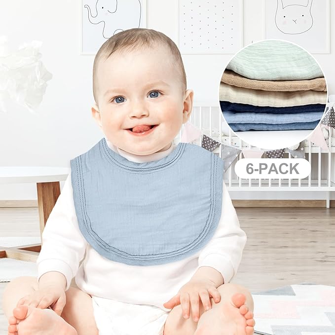 Muslin Baby Bibs 6 Pack for Unisex Girls & Boys, Adjustable Soft Cotton Baby Bibs for Drooling and Teething