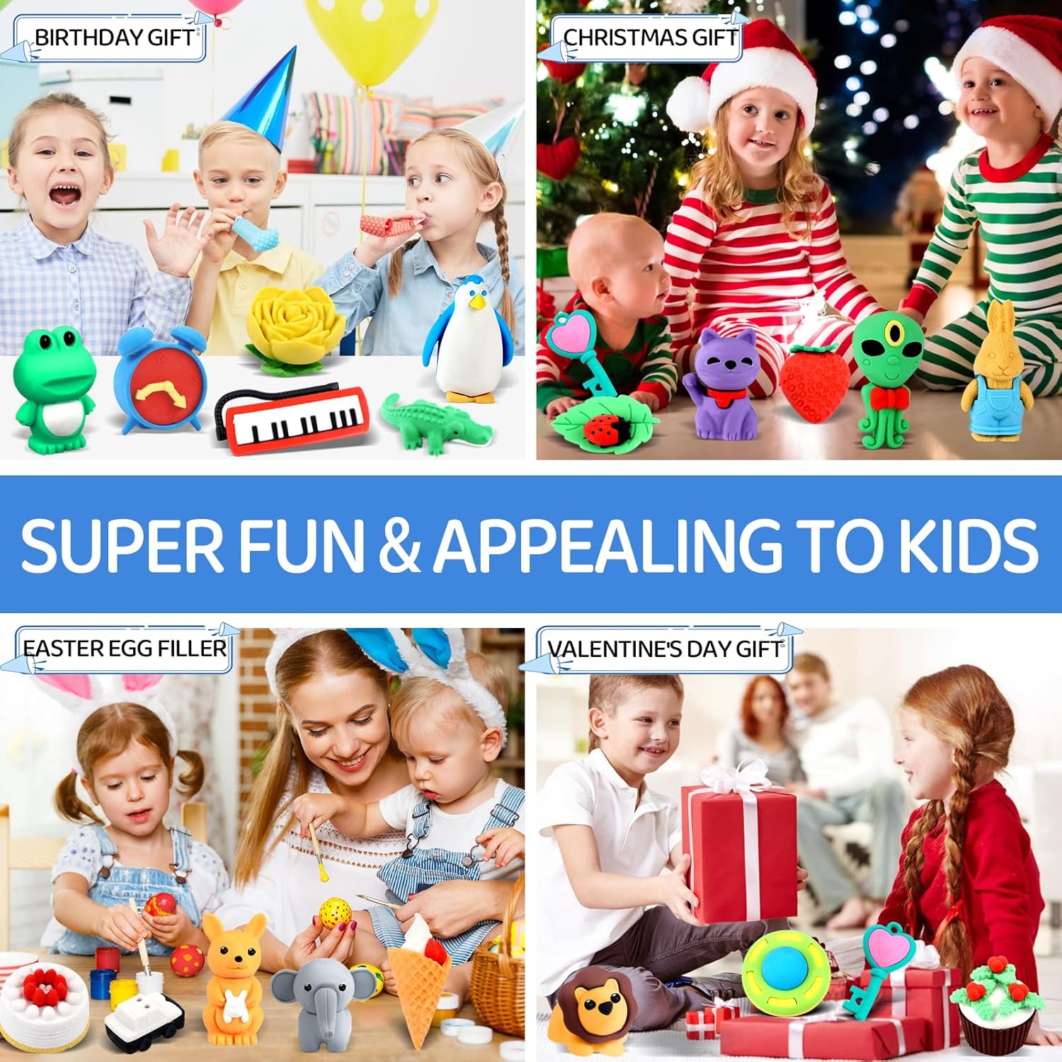- FUN PARTY FAVORS: Work great as both animal erasers easter basket stuffers and Christmas party supplies, birthday party favor gifts, goody bag favors, fun game prizes, Pinata filler, classroom rewards, Easter egg fillers, kids Valentine’s Day gift, carnival gift,treasure box. These animal erasers desk pets goodie bags stuffers are adorable and bright in color, a must have for any treasure box, classroom treats , stocking stuffers or unicorn mermaid party favors