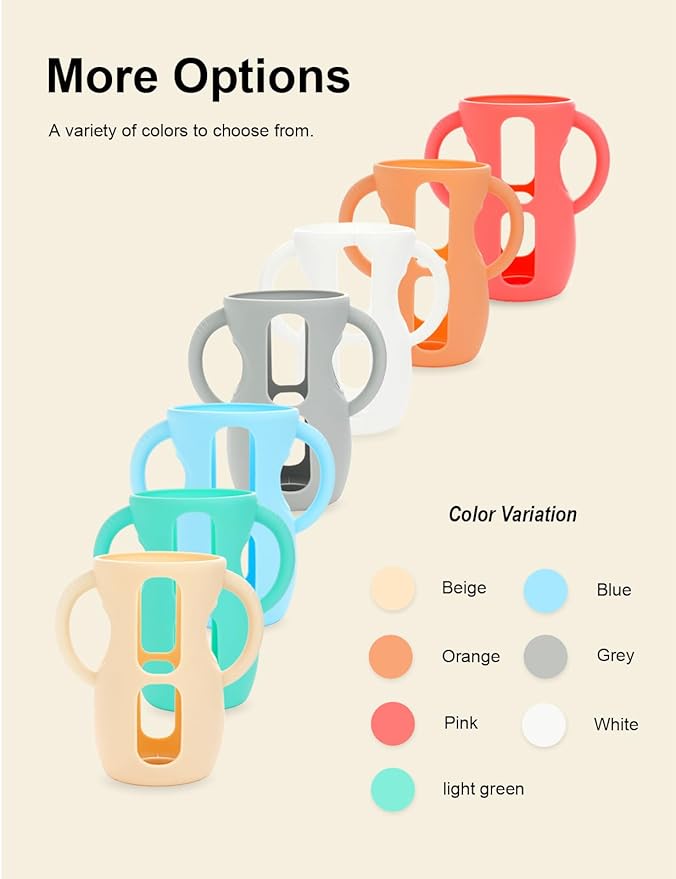 - Easy to Hold: Designed with easy-grip handles, this sleeve helps babies hold their glass bottles securely, reducing the risk of drops. Even if it falls from the dining table, bed, or sofa, it provides excellent protection. It also encourages your baby to learn self-feeding more quickly.