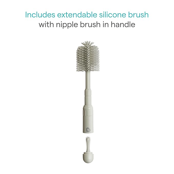 Munchkin® Travel Baby Bottle Drying Rack with Silicone Bottle Brush - Compact and Foldable, Fits Easily in Diaper Bags for On-The-Go Use