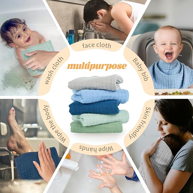 - Verstile Baby Essentials: Our muslin burp cloths will be a thoughtful present for any occasion like baby shower, baby registry, birthday, Christmas, or you can use it as burp rags, baby bibs, baby washcloths and towels, baby wipes, anything else that's available. A must-have for teething baby and mess no more.