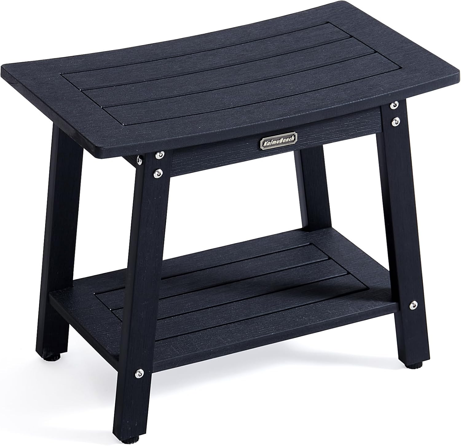 Large HDPS Shower Stool, Shower Bench for Inside to Sit On, Waterproof Bathroom Chair Seat for Shaving Legs, Foot Rest Stool with Storage Shelf, Non-Slip & No Maintenance, Black