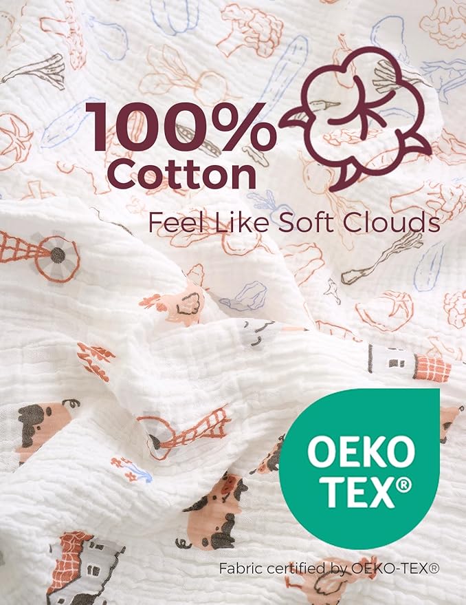 - 【100% Cotton, Quality and Softness All Around】Momcozy practical toddler ultra soft muslin fitted crib sheets are 100% made from quality American natural cotton, which is friendly for baby delicate skin. No weird odors or blurred designs, gentle and cushy cotton crib sheet provides a comfortable surface and a safe sleeping environment for babies helping soothe your newborn and keeping them calm when they are in sleep.