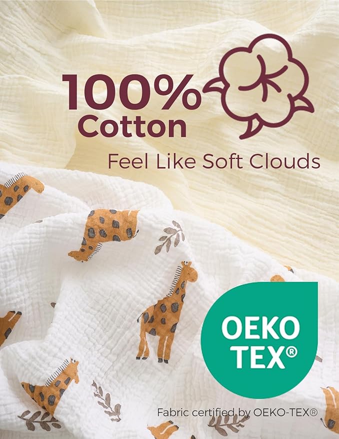 Momcozy Muslin Standard Fitted Crib Sheets, 52"x28", 2 Pack Soft Breathable Natural Cotton Baby Mattress Sheet, 360° Mattress Wrapping No Slip Boys Girls Neutral Toddler Bed Sheet, Bravery Giraffe