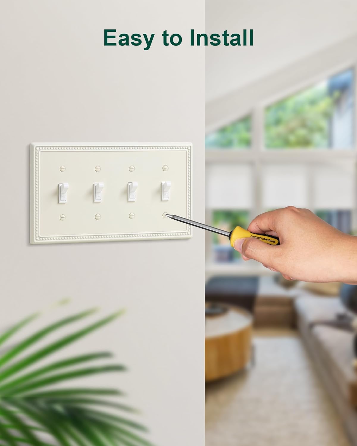 - Elegant Light Almond Finish - The quad light switch plate covers feature a soothing light almond finish, not as dark or yellow as ivory, offering a warmer tone than stark white. This elegant finish adds a fresh appeal to your room and seamlessly blends with any interior style, enhancing the overall aesthetic of your home decor.