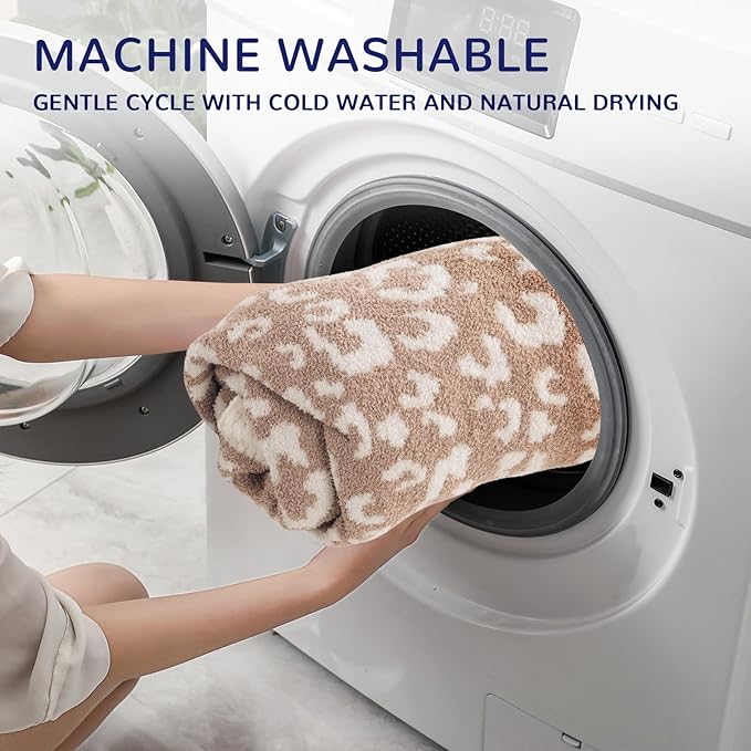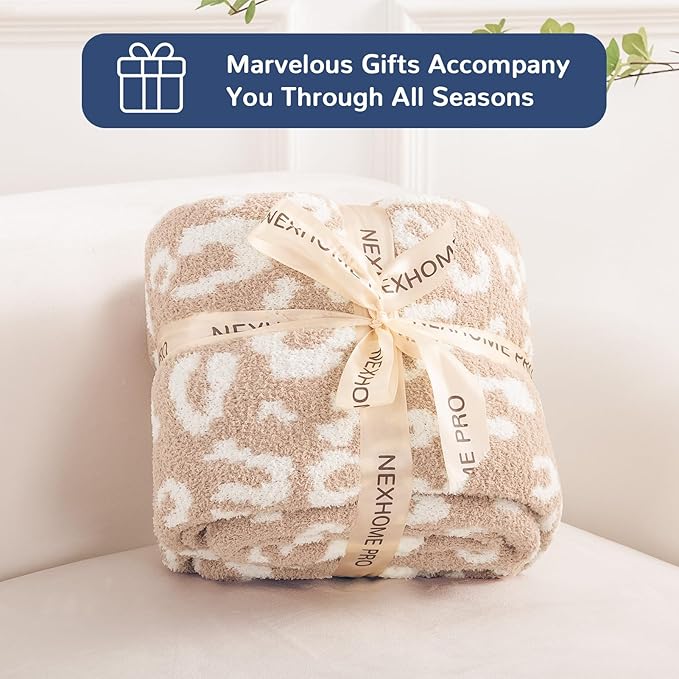 NEXHOME PRO Leopard Soft Blanket Twin Size, Fuzzy Throw Blanket for Couch Bed Sofa Picnic, Knit Blankets for Women Gifts Beige 60 x 80 inches