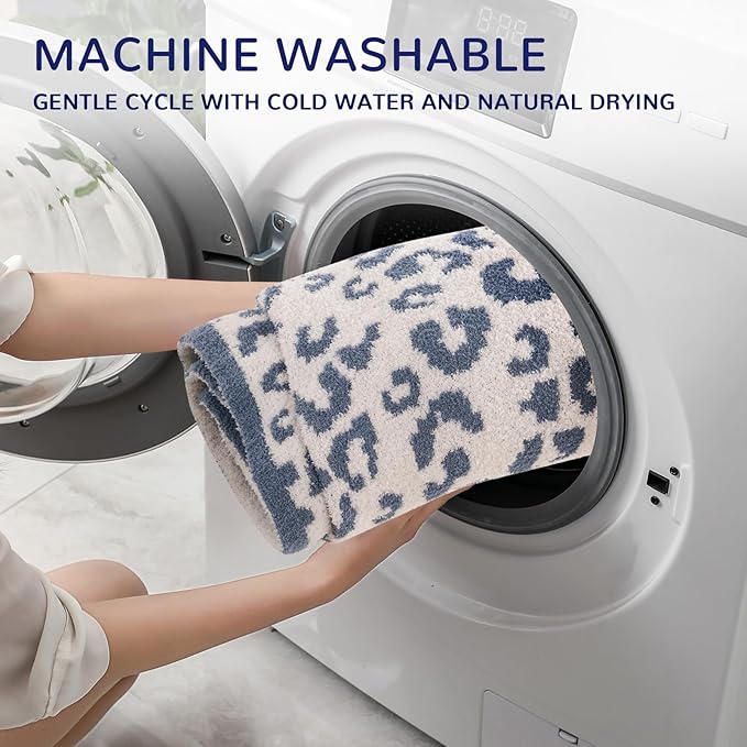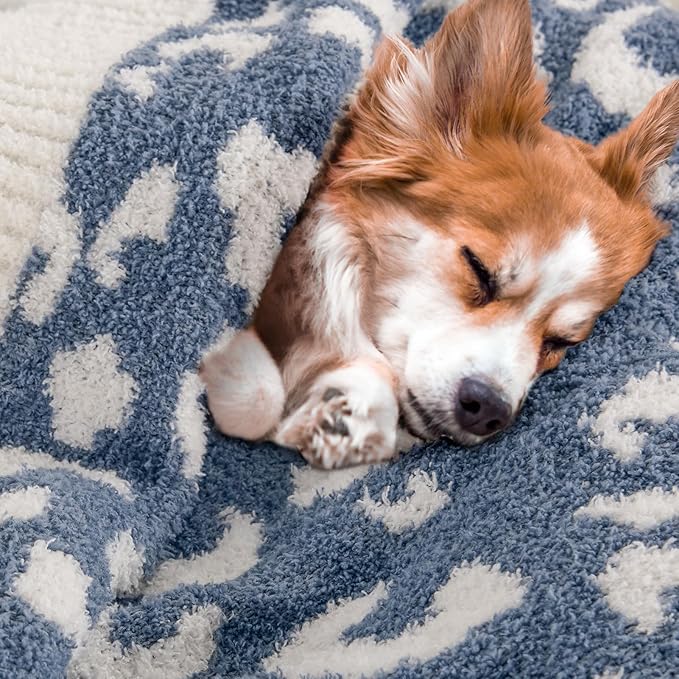 NEXHOME PRO Leopard Soft Blanket, Fuzzy Throw Blanket for Couch Bed Sofa Picnic, Knit Blankets for Women Gifts Blue 50 x 60 inches
