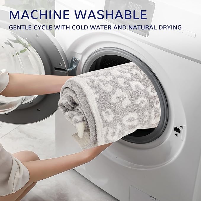NEXHOME PRO Leopard Soft Blanket Twin Size, Fuzzy Throw Blanket for Couch Bed Sofa Picnic, Knit Blankets for Women Gifts Grey 60 x 80 inches