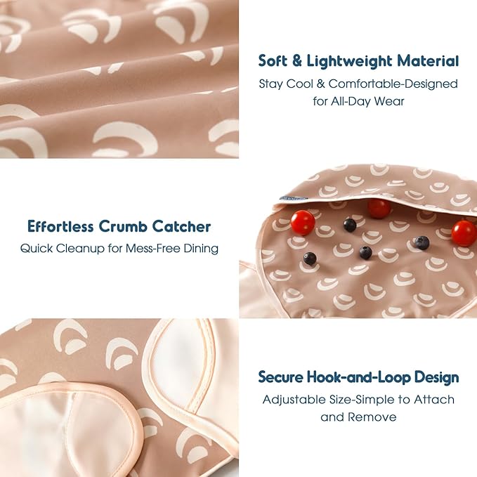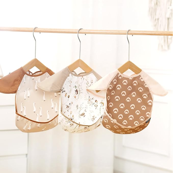 - ADORABLE AND FUNCTIONAL DESIGN: GRSSDER mess-proof bibs set include 3 different original adorable patterns, making your little ones more cuter and cheerful when feeding. Designed for comfort and convenience, our waterproof bibs keep your little one's clothes clean during mealtimes, playtimes and messy adventures. The deep catch-all pocket make it easy to grab every crumb, splash, and paint drip.