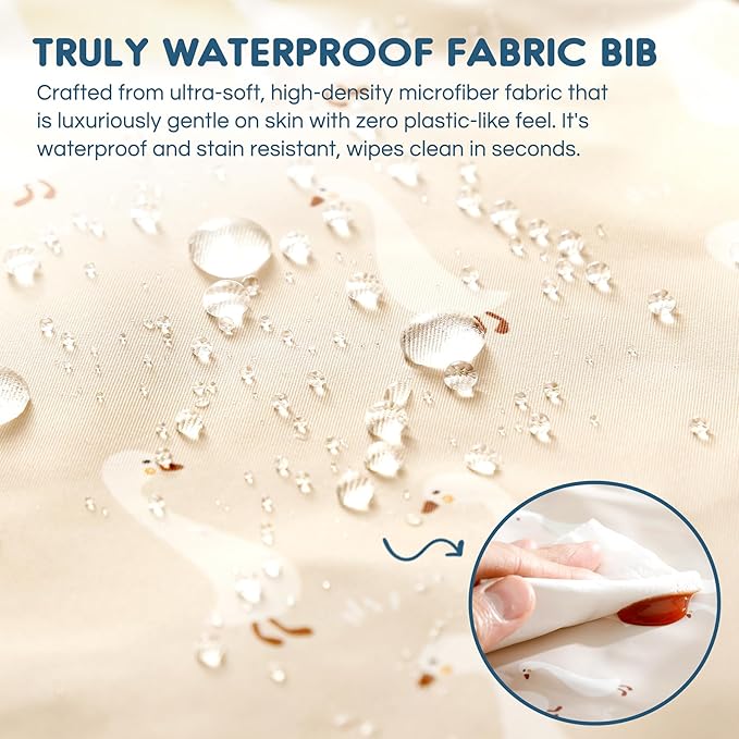 - ULTRA SOFT AND WATERPROOF MATERIAL: GRSSDER waterproof baby bibs are crafted from silky-soft, lightweight and high-density microfiber fabric with high quality TPU material that is luxuriously gentle on baby senstive skin with zero plastic-like feel. It's waterproof and stain resistant, wipes clean in seconds. These waterproof bibs for baby boy or girl are designed to keep messes at bay.