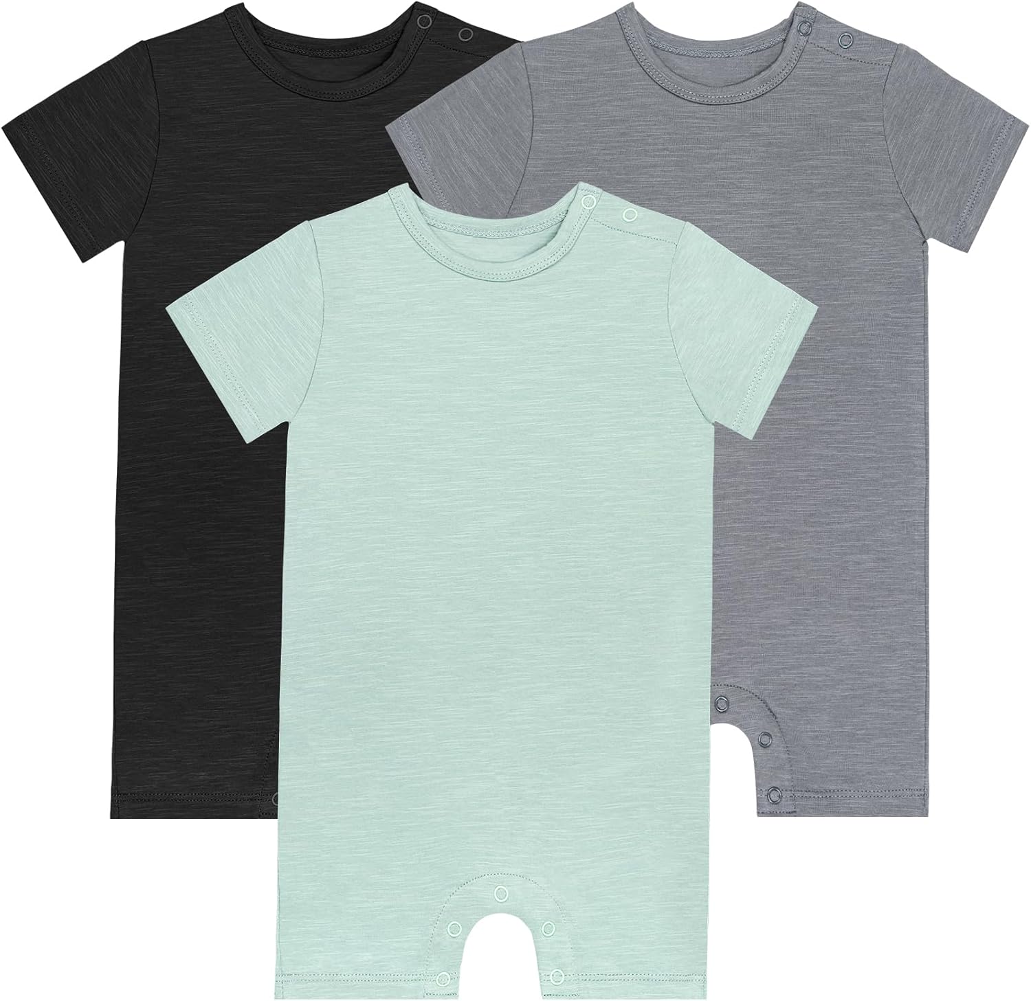 GUISBY Baby Short Sleeve Bodysuit Snap Crotch Closure Cotton Pajamas for Baby 3-Packs