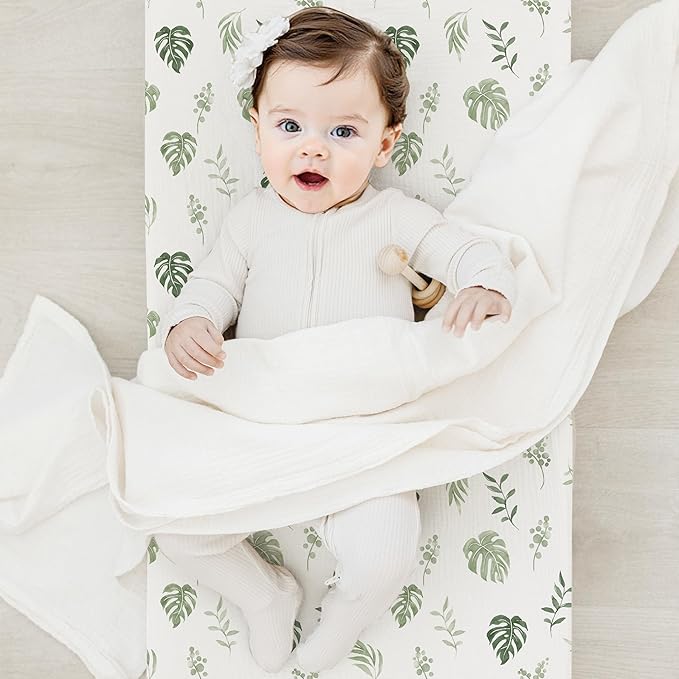 3 Pack Muslin Changing Pad Covers for Girl, Boy, 100% Soft Cotton Changing Table Cover, Breathable Baby Nursery Diaper Chang Pad Sheets (Leaf)