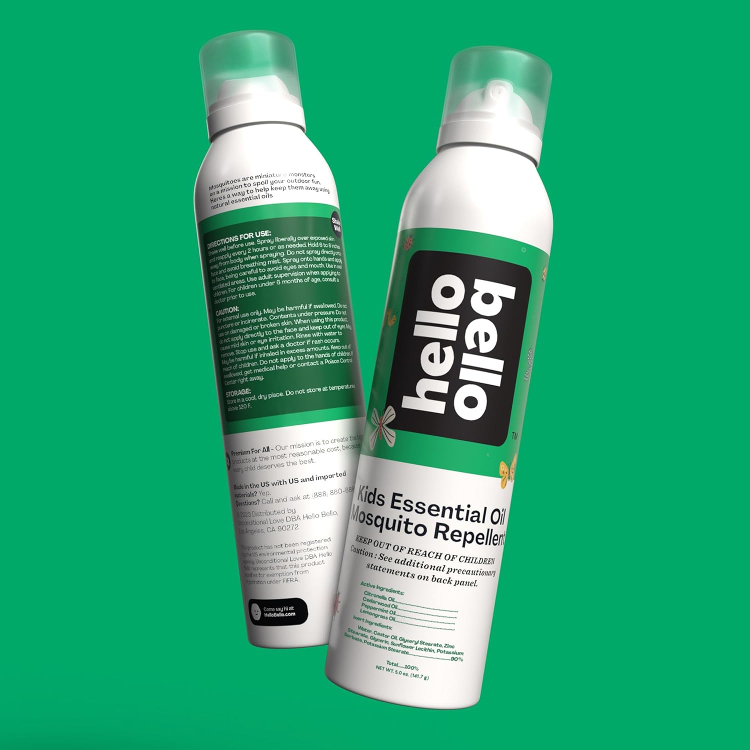 - Hello Bello Mosquito Repellent Spray is Clinically Tested, Dermatologist Approved, Vegan, Not Tested on Animals (Leaping Bunny Certified) and designed with babies, budgets, and the planet in mind