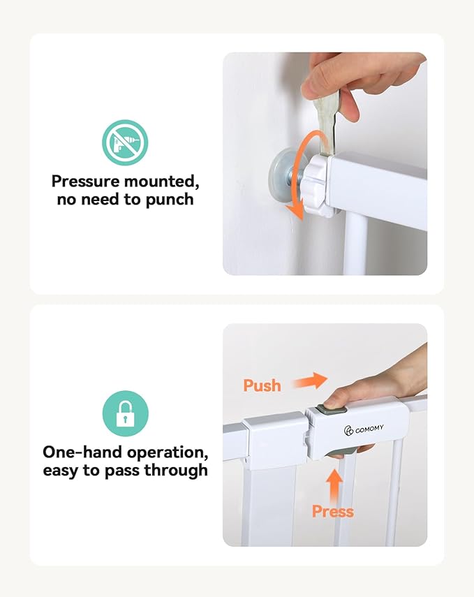 COMOMY 42" Extra Tall Baby Gate for Stairs Doorways, Fits Openings 29.5" to 40.6" Wide, Auto Close Sturdy Safety Dog Gate for House, Pressure Mounted Easy Walk Through Pet Gate with Door, White