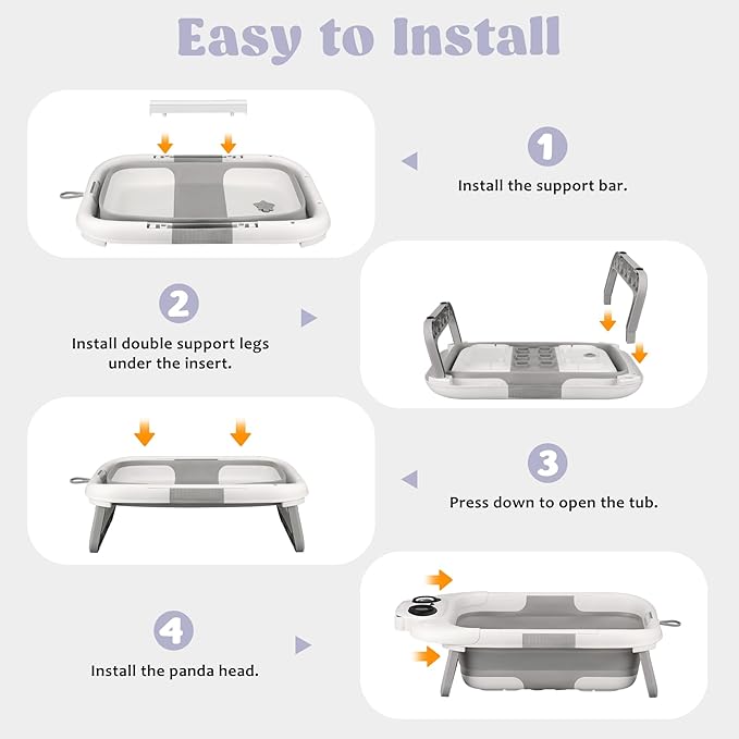- Detachable Cushion for Comfort: This baby bath tub comes with soft panda non-slip pads and adjustable shoulder straps, supporting baby's head and neck. Reduces bath irritability, creating a pleasant experience