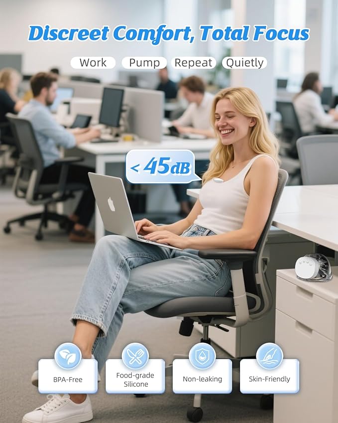 - Whisper-Quiet for Peaceful Nights - Enjoy stress-free night pumping with our hands free breast pump, built with advanced noise reduction. At only 40dB, it's quieter than most breast pump electrical options on the market. Let your baby rest peacefully while you pump silently beside them—ideal for late-night nursing sessions