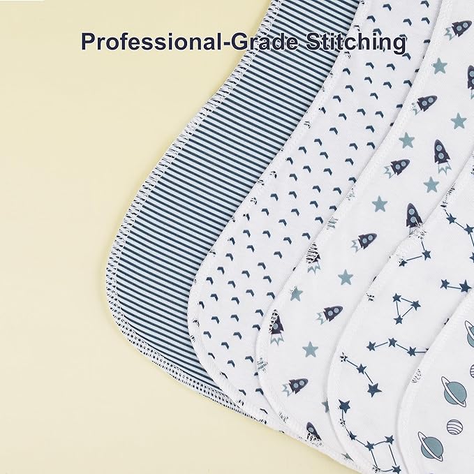 - ๐ฟ Ultra-Soft 100% Cotton & 3-Layer Absorbency Experience superior comfort and protection. Made with 100% natural cotton on the front and back for gentle touch on baby's skin, plus a super-absorbent polyester fleece middle layer. This 3-layer construction quickly soaks up spit-up and drool to keep your baby and your clothes dry all day.