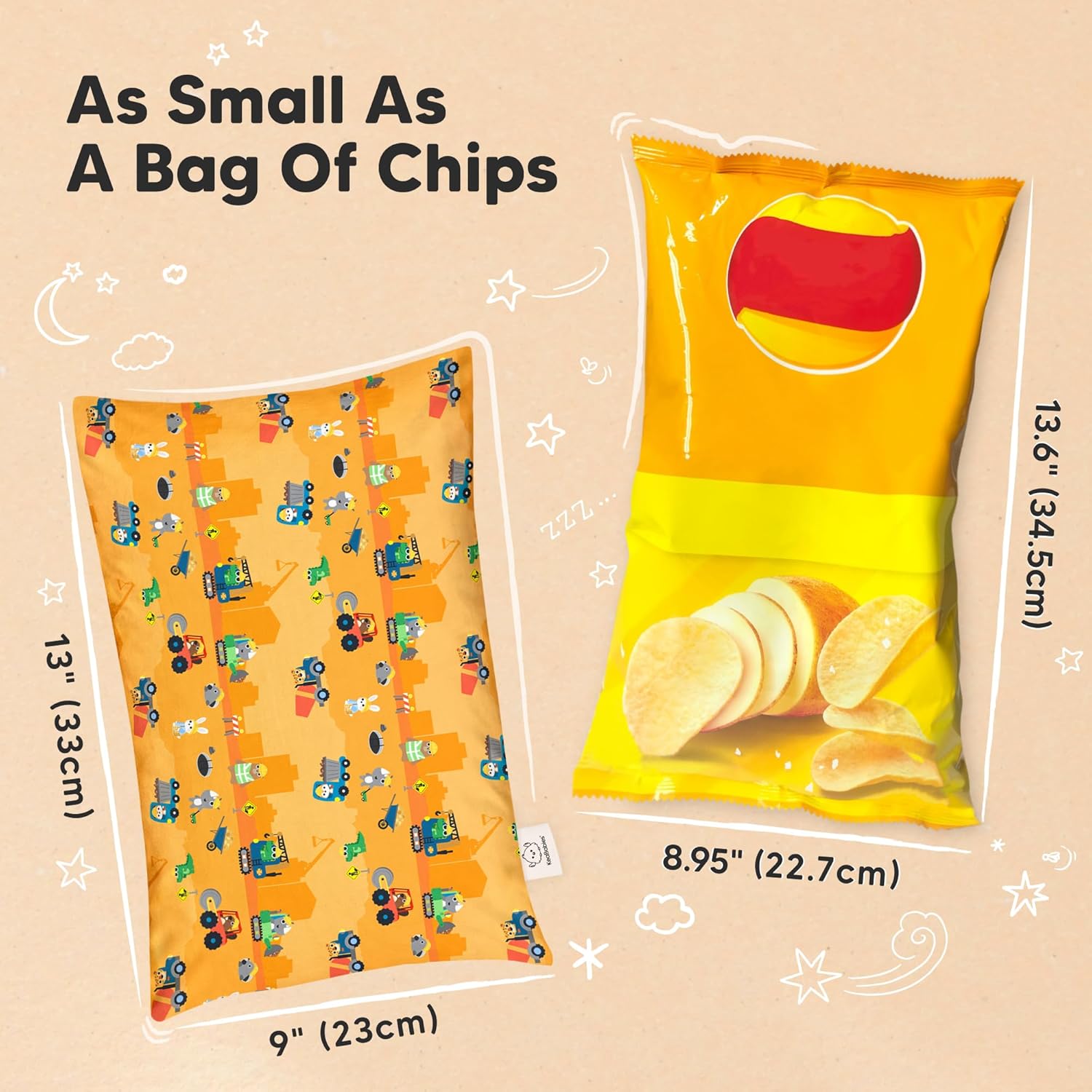 Mini Toddler Pillow with Pillowcase - 9x13 My Little Dreamy Travel Kids Pillow for Sleeping, Toddler Bed, Small, Tiny, Organic Cotton Pillowcase, Soft & Breathable,Kids 2-4 Years Old (Little Builders)