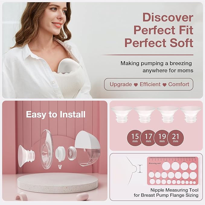 - ✅【 Getting Right Size 】Using our silicone nipple measurement card can help you accurately measure changes in size during different stages of breastfeeding, and replace the most suitable flange in time to ensure maximum comfort and pumping efficiency. In the middle or late stages of breastfeeding, if there is little change of your nipple sizing, we recommend that you purchase a kit of the same size and eplacing them every 2-3 months to maintain optimal functionality.