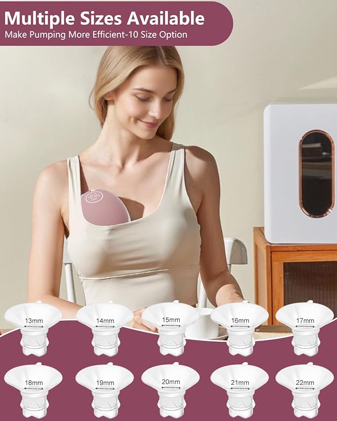 - 【Match Correct Size,Customized Comfort】: These breast pump flange insert kits are designed for most 24mm wearable pumps. We have developed 13/14/15/16/17/18/19/20/21/22mm flange inserts size to meet for most mothers during different stages of breastfeeding. If your nipple rubs or feels squeezed in the flange channel, it is an unsuitable flange size and you need to replace the right size flange insert.