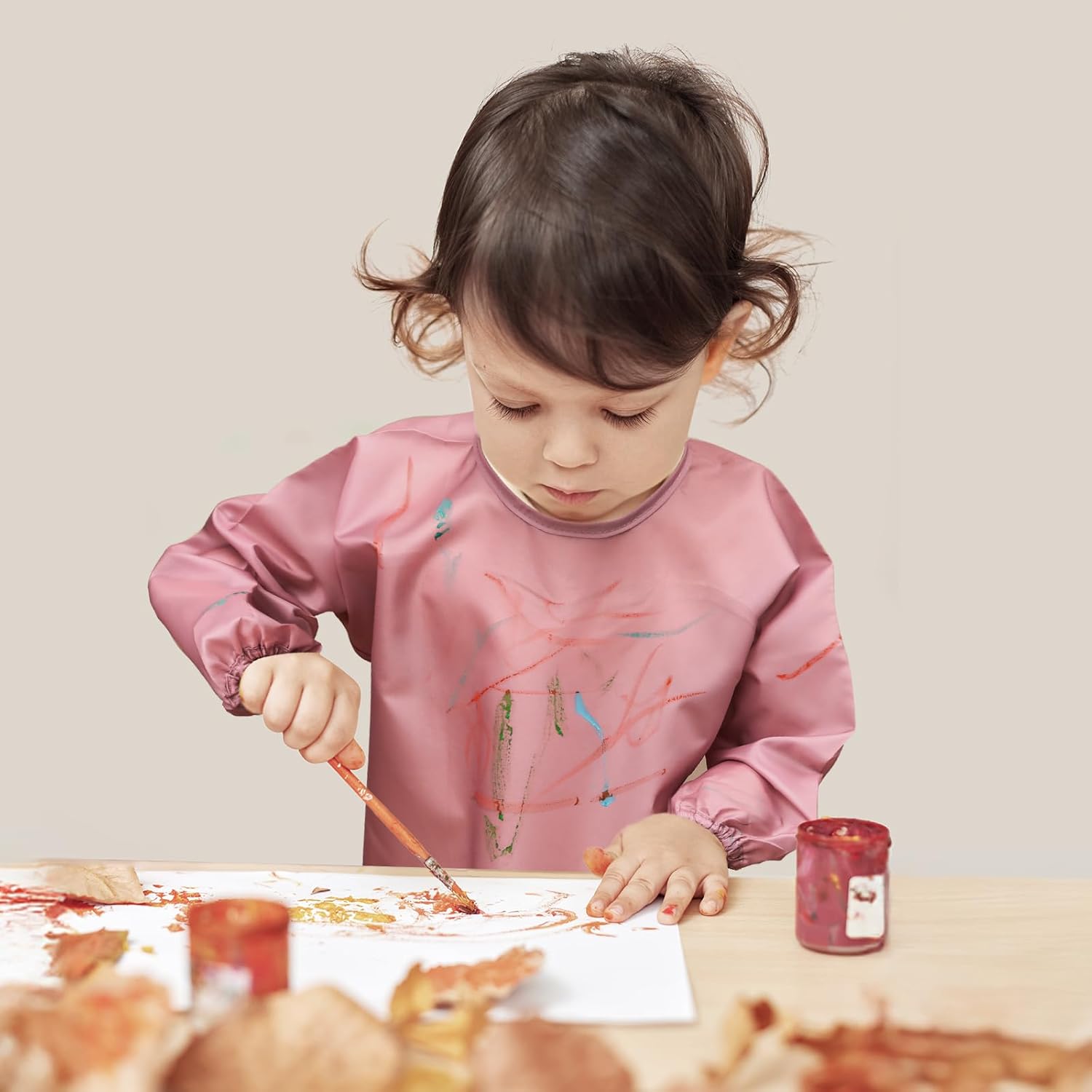 - Fits 6-24 Months - These long-sleeve baby bibs feature an adjustable neck strap and a back tie closure for a perfect fit. Elasticized cuffs allow for customizable sleeve length, making them ideal for babies and toddlers aged 6 to 24 months to paint or eat independently.
