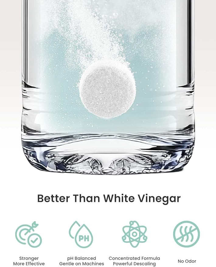 - ๐๐๐ฌ๐ฒ ๐ญ๐จ ๐๐ฌ๐ โ ๐๐จ ๐๐๐๐ฌ๐ฎ๐ซ๐ข๐ง๐ : Comes with 24 individually wrapped tabletsโjust drop one in and start the 'Wash' cycle. One tablet per descaling cycle for effortless maintenance.