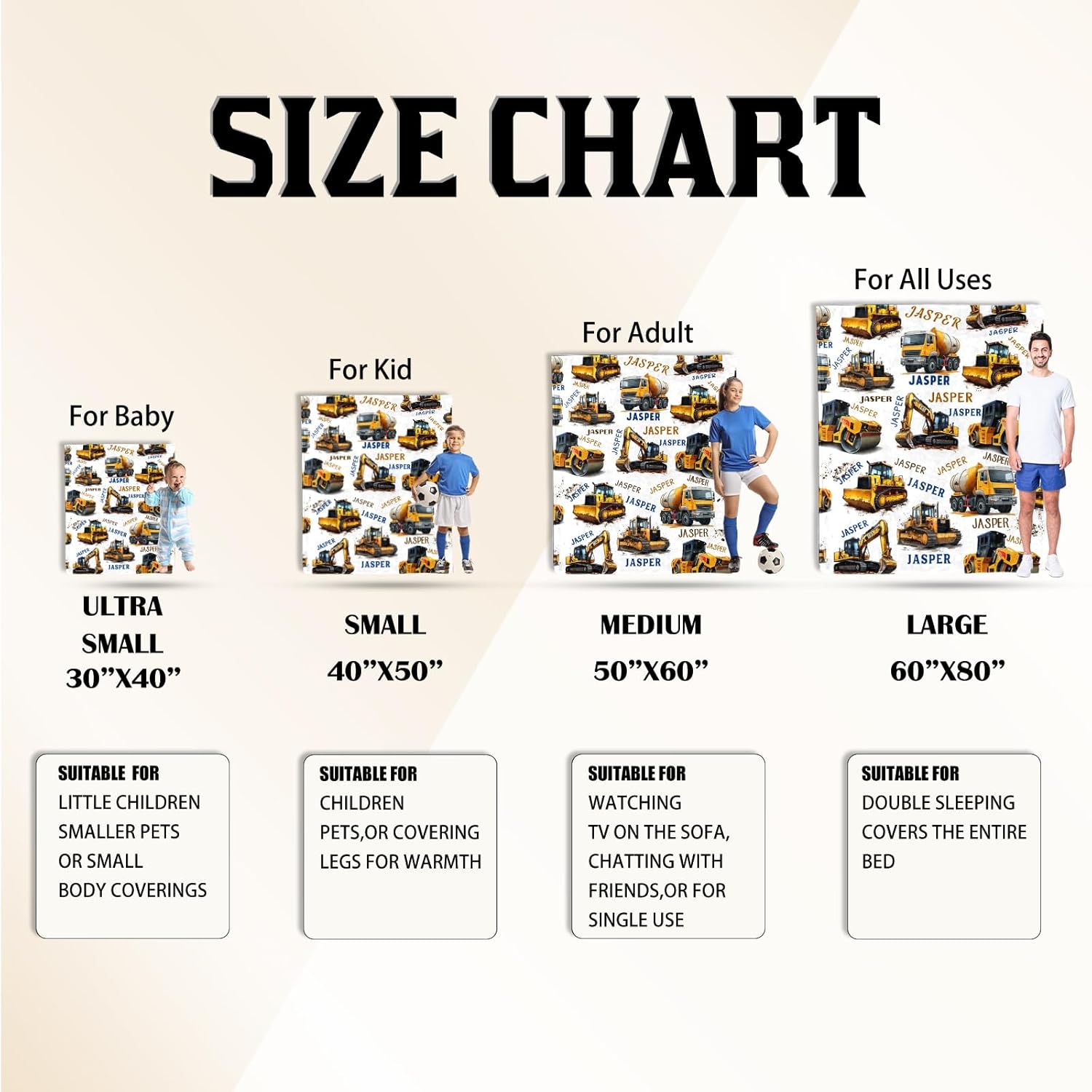 - Multiple Sizes & Colors Baby Blanket -- custom name blanket are available in 5 colors and 4 sizes: 30"x40" , 40"x50" , 50"x60" (single beds), 60"x80" (family movie nights).Select your loved one’s favorite shade to create a treasured keepsake that infuses their world with color. Thoughtfully crafted for both gifting and everyday cuddles, these blankets grow with your child while keeping memories vivid wash after wash.