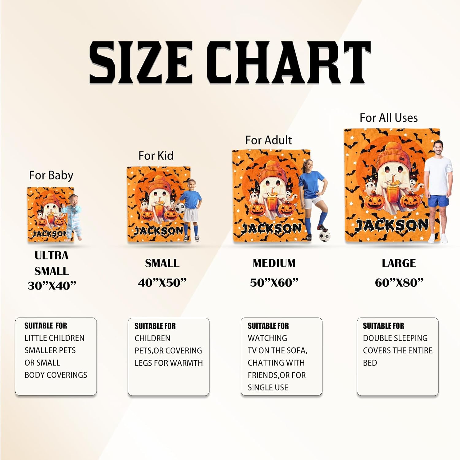 Ship Next Day, Custom Halloween Blanket - Printed in USA, Personalized Baby Blankets with Name, Gift for Kids Boys Girls, Unique Present for Birthday, Christmas, Halloween Bats Toddler Blanket