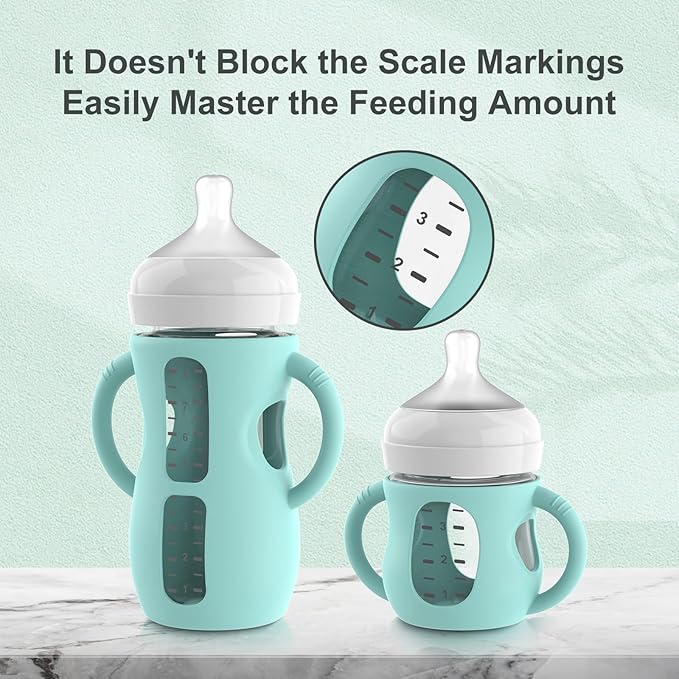 3PCS Philips Avent Glass Bottle Silicone Sleeves with Handles, Compatible with Philips Avent Glass Bottles 4 oz, Suitable for Avent Baby Bottles 4 oz, and Easy to Clean