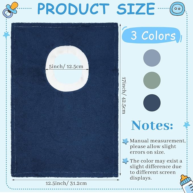- Easy to Replace: the bibs for babies have a sleeve hole with a diameter of 5 inches/ 12.5 cm, which is enough for you to help your baby change the bib flexibly; The surrounding terry fabric is very soft, which makes your baby comfortable