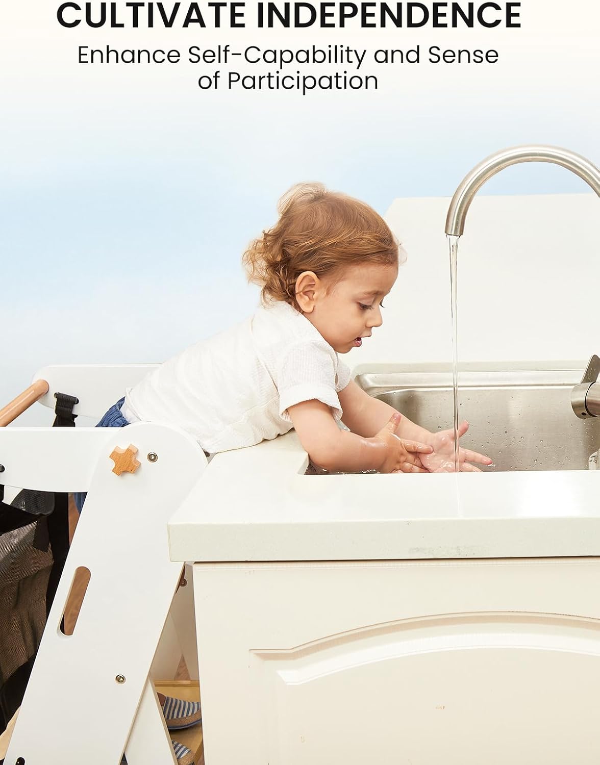 - Sturdy & Stable: Baby's independent exploration is as stable as a rock, no fear of falls even when active! The foldable toddler tower features widened side design with reinforced foot pads. Every edge is finely rounded to protect baby's hands from cuts, making growth safer and happier.