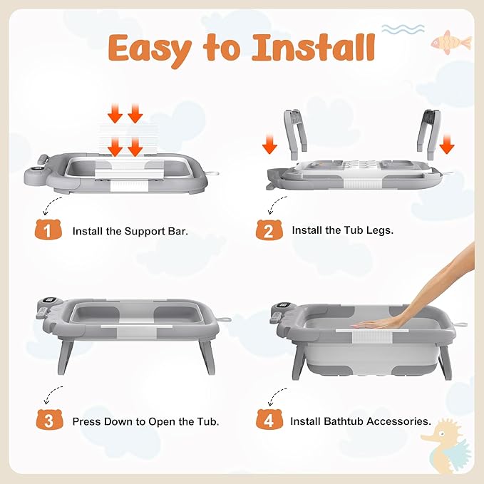 - Practical Parent-Centric Details: Every feature (gentle materials, smart temp control) of this baby tub prioritizes comfort and ease, making it a hassle-free, safe infant bathtub for daily use