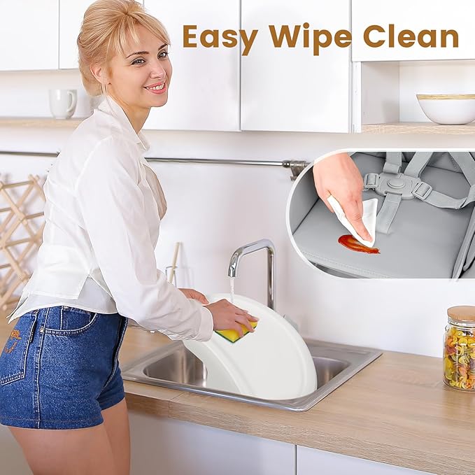 - Effortless Mess-Free Cleanup: The dishwasher-safe tray shrugs off puree stains and odors in any cycle, while the easily detachable PU cushion can wipe spotless in seconds with just a damp cloth. Designed for busy parents, Ezebaby high chair eliminates post-meal stress.