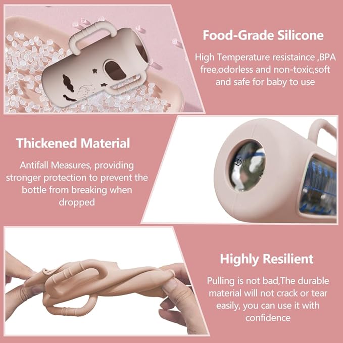 - 【Safety Material, Food-Grade Silicone】: Silicone baby bottle sleeves are made of food grade silicone,BPA free,odorless and non-toxic,Dishwasher safe, soft and safe, which is safe for baby girls to use. Anti-stick silicone material don't stick to the dust, hair, and etc, helpful for infant hygiene