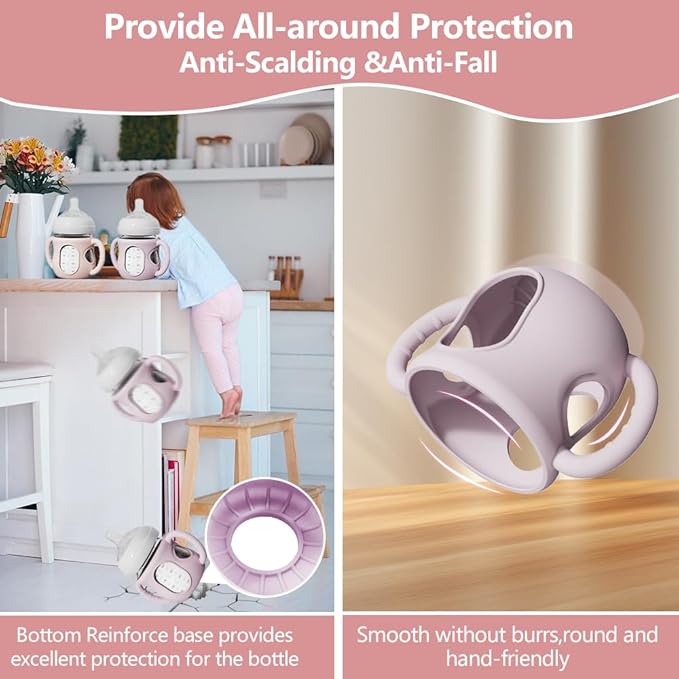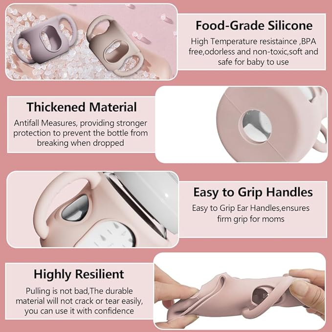 - 【Safety Material, Food-Grade Silicone】: Silicone bottle sleeves are made of food grade silicone,BPA free,odorless and non-toxic,Dishwasher safe, soft and safe, which is safe for baby girls to use. Anti-stick silicone material don't stick to the dust, hair, and etc, helpful for infant hygiene.