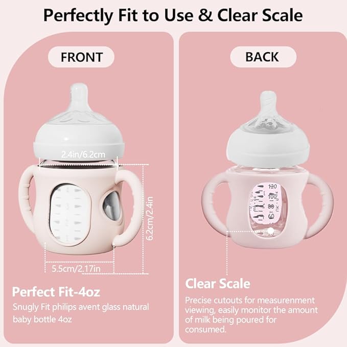 - 【Bottle Compatibility】:Silicone Sleeves are compatible with Philips Avent Natural Glass Bottles and Philips Avent Anti Colic Bottles 4oz. The glass bottles sleeve provide a strong protective layer that helps prevent breakage from accidental drops.NOTE: This is NOT an infant feeding device. It is a protective sleeve for standard bottles and cups