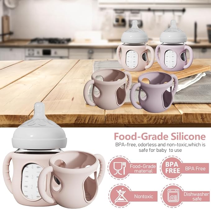4 Pack Silicone Sleeves for Avent Natural Glass Bottles, Anti Breakage Bottle Holder with Handle, Compatible Philips Avent Glass Natural Bottle 4 oz, Not for Infant Use